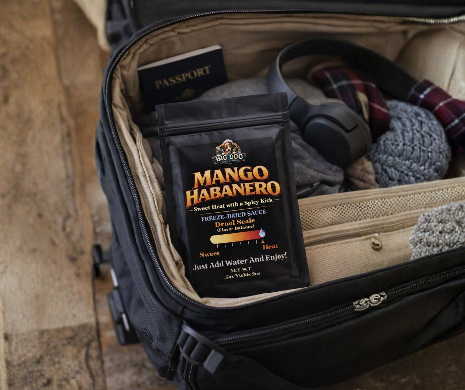 Mango Habanero Freeze-Dried BBQ Sauce delivers the bold, complex flavors of Big Dog's signature recipe in an ultralight, shelf-stable format engineered for adventurers and preparedness enthusiasts. This innovative freeze-dried technology preserves our small-batch mango and habanero blend without refrigeration, maintaining peak flavor integrity for up to 20 years. Each 3-pack contains individual 0.5 oz pouches that reconstitute instantly with water, yielding approximately 2 oz of restaurant-quality sauce per packet. The flavor profile opens with bright tropical mango sweetness, followed by the smooth, progressive heat of premium habaneros—a balance that enhances everything from grilled proteins to trail meals. Engineered for versatility, this format excels in demanding environments: backcountry expeditions, extended road trips, emergency preparedness kits, and situations where weight and storage space matter. Simply add water, stir, and experience the same depth and complexity you'd expect from our full-size bottles, minus the bulk and refrigeration requirements. Real sauce. Real flavor. Reimagined for modern mobility and long-term reliability.